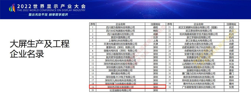 近日,由四川省人民政府、工業和信息化部主辦,以“顯示無處不在,創享數字經濟”為主題的2022世界顯示產業大會在成都市舉行。大會發布了超高清視頻發展白皮書(2022)、“百城千屏”第二批公共大屏接入候選名錄及供應商企業名冊、“百城千屏”供應鏈手冊等。其中,福日電子成員企業邁銳光電成功入選“百城千屏”大屏生產及工程企業名錄,成為點亮“百城千屏”的重要助推力量。